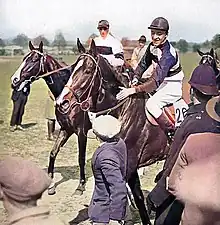 After his retirement from racing, Adam's Apple was sold to Argentine breeders.[4] There he met with some success, siring the filly Chimentera, winner of the Las Oaks at Santiago Chile's Club Hipico de Santiago, and the very good filly La Bastille, likewise a winner of the Oaks but who also defeated her male counterparts in winning the El Derby at the Valparaiso Sporting Club racetrack at Vina del Mar, Chile.[5] Adam's Apple died in 1946 at the Ojo de Agua stud in Argentina.[6]