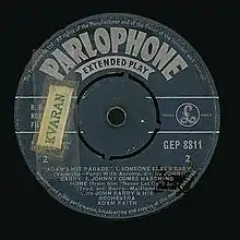 Adam's Hit Parade is an EP by Adam Faith, released in December 1960. The EP is a 7-inch vinyl record and released in mono with the catalogue number Parlophone Company, Ltd. GEP 8811. Adams Hit Parade has the distinction of being the UK's number-one EP on three occasions. It first reached the number on spot on December 17, 1960, but was bumped out a week later by Cliff Richard and The Shadows's Cliff's Silver Discs. On January 21, 1961 Faith reclaimed the top spot, only to be evicted a week later by the Shadows' The Shadows (EP) EP which held the top slot until Faith regained it for a week on May 27, 1961.