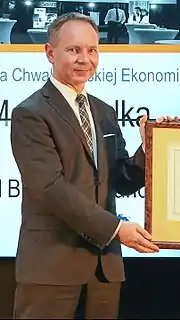 Since 1994, he has worked for the Warsaw Stock Exchange in several management functions. Since 28 June 2006 he has been a member of the management board. On behalf of WSE, he has been the main negotiator of the strategic agreements with NYSE Euronext. On 17 January 2013 he was appointed as the President of the management board.[1] In addition, he serves as the chairman of the supervisory board of the Polish Power Exchange and chairman of the supervisory board of BondSpot. Maciejewski is a jury member at the Galeria Chwały Polskiej Ekonomii.[2]