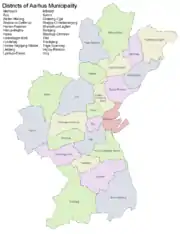 - 1 2 "Distriktsinformation" (in Danish). Aarhus Municipality. Retrieved 16 August 2015.