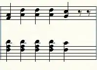 The "target chord" concept is applied equally to homomphonic parallelism and its various iterations as it is to polyphony. These vertical combinations by means of their strict repetition serve as an organizing structure to the improvised nature of the harmonic motions.