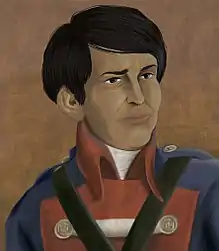 Agustín Agualongo (1780–1824) was a commander on the royalist side in the wars for Colombian independence. Of indigenous origin, he was born in the Andean town of San Juan de Pasto. In 1811, he volunteered to fight on the royalist side, and served under the command of Colonel Basilio García and Colonel Francisco González, among others. In 1822, as lieutenant colonel, he was credited with halting the progress of republican forces during the Southern Campaign. In 1823, by now promoted to colonel, he was the losing commander in the Battle of Ibarra, Simón Bolívar's solitary military encounter on Ecuadorean soil.