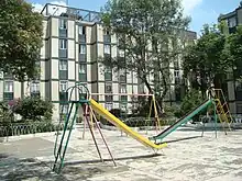 The Ejército Nacional unit, finished in 1974, is of special interest because it was built on an unused plot of land inside a city block. It is one of the first infills in the history of Mexican architecture. This project was part of a strategy by INFONAVIT, the country's main public housing agency, called "Aprovechamiento de terrenos baldíos urbanizados" (Taking advantage of abandoned urban plots).[6]