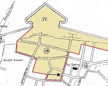 On the site of what appeared to be a small mediaeval chapel or church, a mosque was built in 1902. A smaller mosque on the site was built in 1895. The apse of the original building with a moulded arched window of 16th century style survived, but all such traces have now been removed.[4]