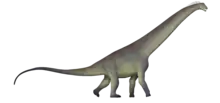Alamosaurus (/ˌæləmoʊˈsɔːrəs/;[1] meaning "Ojo Alamo lizard") is a genus of opisthocoelicaudiine titanosaurian sauropod dinosaurs containing a single known species, Alamosaurus sanjuanensis, from the Maastrichtian age of the Late Cretaceous period in what is now southwestern North America. Isolated vertebrae and limb bones indicate that it reached sizes comparable to Argentinosaurus and Puertasaurus, which would make it the absolute largest dinosaur known from North America.[2] Its fossils have been recovered from a variety of rock formations spanning the Maastrichtian age. Specimens of a juvenile Alamosaurus sanjuanensis have been recovered from only a few meters below the Cretaceous-Paleogene boundary in Texas, making it among the last surviving non-avian dinosaur species.[3] Alamosaurus is the only known sauropod to have inhabited North America after their nearly 30-million year absence from the North American fossil record and probably represents an immigrant from South America.