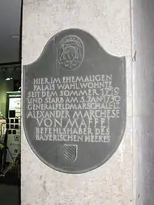 Plaques commemorating the house in Munich where Alessandro Maffei died.