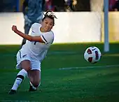 Being US-born to a New Zealand father, Riley represented New Zealand at the 2006 Women's U-20 World Cup finals.[17] She made her senior debut in a 5–0 loss to Australia on 6 February 2007,[18] and represented New Zealand at the 2007 FIFA Women's World Cup in China,[19] where they lost 5–0 to Brazil, 2–0 to Denmark and 2–0 to China.[20]