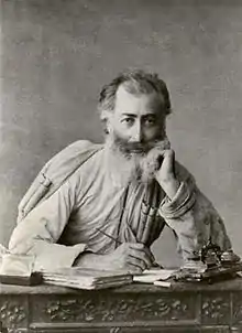 Kazbegi was born in Stepantsminda[1] the great grandson of Kazibek Chopikashvili, a local feudal magnate who was in charge of collecting tolls on the Georgian Military Highway. Alexander Kazbegi studied in Tbilisi, Saint Petersburg and Moscow, but on returning home, decided to become a shepherd to experience the lives of the local people. He later worked as a journalist, and then became a novelist and playwright. In his later life, he suffered from insanity. After his death in Tbilisi, his coffin was carried across the Jvari Pass to his hometown of Kazbegi (now renamed Stepantsminda), which also preserves his childhood home as a museum in his honor.