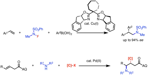 - ↑ Liu, Z.; Wang, Y.; Wang, Z.; Zeng, T.; Liu, P.; Engle, K. (2017). "Catalytic Intermolecular Carboamination of Unactivated Alkenes via Directed Aminopalladation". J. Am. Chem. Soc. 139 (32): 11261–11270. doi:10.1021/jacs.7b06520. PMID 28727452.
