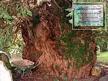 The churchyard contains a Grade II listed mid-18th-century table tomb.[3] Also in the churchyard are several ancient Yew trees, one of which is claimed to be over 2,000 years old.[2]