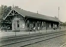 On October 19, 1848,[2][3] a station stop was established on land donated by Joseph Mallinson,[4] a carriage painter who owned much of the land in the area.[7] Mallinson donated the land to encourage the railroad to establish a station at the location. This depot was named Allendale after the surveyor of the Paterson and Ramapo Railroad. While a community began to grow around it, the depot itself fell into disrepair by 1857 and the New York, Lake Erie and Western Railroad abandoned service. Two years later, the depot was described as being abandoned and left for ruin. Mallinson restored the building and service returned. He built a freight depot and by 1860, the railroad had built a new depot of gravel.[4]