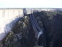 The Almendra Dam, also known as Villarino Dam, in Salamanca, Spain, interrupts the course of the River Tormes five kilometres from the village from which it takes its name: Almendra (literally, almond). It was constructed between 1963 and 1970.