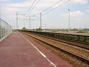 Almere Strand railway station (English: Almere Beach) was a railway station in Almere, Netherlands. It was located on the Weesp–Lelystad railway (Flevolijn) between Weesp, North Holland and Almere Muziekwijk, Flevoland. Almere Strand station was served only during the Libelle Zomerweek and during events at the nearby beach.[1][2] Trains at this station were operated by Nederlandse Spoorwegen.