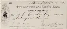 The Alnwick and County Bank was a short-lived bank, founded in Alnwick, Northumberland, England in 1858, and purchased by the North Eastern Banking Company in 1875.