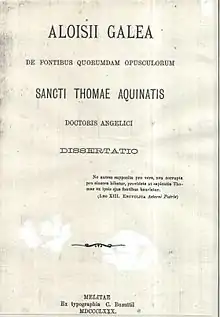 Galea's Caritate and Tractatus brought him considerable fame amongst orthodox Thomists, considering them a worth addition to their already gargantuan mass of literature supporting the doctrines of Aquinas. This contribution was duly recognised in 1957 by Gundisalvus Grech, who published a 23-page pamphlet in English (Progress Press, Valletta, Malta, under the title Don Luigi Galea: A distinguished Maltese scholar.[9] The pamphlet gives a biography of Galea, and a review of all his writings. It also acknowledges Galea’s contributions as a theologian and historian.