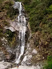 Amitabh Bachchan Falls (Real name is Bhew-ma Falls meaning Bhew - Snake, Mar- Red Falls as per local folk takes and history of Lachung Dzomsa, North Sikkim ) lies on the road connecting Chungthang to Yumthang Valley in Lachung, North Sikkim district of Sikkim. It has believed that the Indian tourist misinterpreted the names as (Bhima Falls) Amitabh Bachchan Falls from the Bollywood star Amitabh Bachchan, who is very tall.[1]