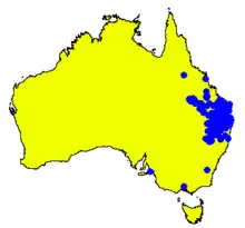 Angophora leiocarpa grows in open forest on sandstone hills and outcrops from Blackall and Mackay in Queensland, south to Narrabri and Grafton in New South Wales.[4][5]