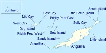 - ↑ "Districts of Anguilla". Archived from the original on 2017-02-13. Retrieved 2015-03-23.