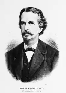 Frič was born in Prague, the second son of Dr Josef Frič (1804-1876) who was a well-known lawyer and politician who served in the Prague municipal council. His mother Johanna Reisová took an active role in the education of women. His father was a treasurer for the Czech museum (Matice česká from 1842) and he became interested in museums and collections at an early age. His brother Vaclav Frič became a major natural history collector and dealer.[1] In 1848 Antonin volunteered at the museum under Maxmillian Dormitzer. At the age of nineteen he wrote a guide to ordering animal collections. He continued to work as an unpaid assistant and then went to study law at Prague University. He then decided to move to the natural sciences and in 1854 he studied medicine and qualified in 1863. In 1860 he travelled to London and on his return he gave a talk on the Kensington museum and its activities. After the death of Dormitzer, he succeeded the position at the museum. He received a position in comparative anatomy at the medical faculty in 1864 and became an associate professor in 1871, and ordinary professor in 1881. For the Paris fair of 1867, he was involved in the production of large models of radiolarians based on the illustrations made by Ernst Haeckel. Such models were later sold by his brother Vaclav.[1] Other interests included birds and he published an illustrated book on the birds of Europe.[2]
