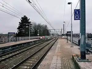 Arcades railway station (French: Gare des Arcades) or Arcaden railway station (Dutch: Station Arcaden)[lower-alpha 1] is a railway station located in the municipality of Watermael-Boitsfort in Brussels, Belgium. It is served by the Brussels Regional Express Network (RER/GEN) operated by the National Railway Company of Belgium (NMBS/SNCB).[1] The station has two platforms and is wheelchair accessible.
