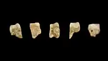 Five of the seven known fossil teeth of Homo luzonensis found in Callao Cave, the Philippines.