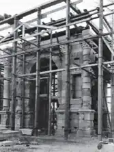 Photograph showing the reconstruction work on the Arco dei Gavi underway, 1932