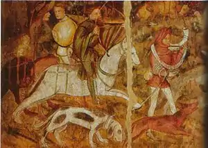 A scenthound in the Middle Ages used to locate a stag on the morning of a stag hunt, the limer was kept on a leash and led the huntsman to the stag, which was subsequently hunted by other hound types; limers were known for their scenting ability and had to work silently to avoid alerting the quarry.[24] |