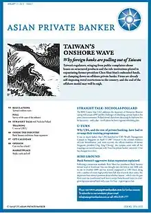 Asian Private Banker's print magazine is the only Asia-produced magazine focusing exclusively on private banking and wealth management, with lead feature articles on industry issues, regular columns and a compilation of articles from the website during that period.