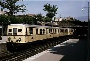 In 1926 the SAP S.A. was bought by the Power and Traction Finance Ltd and renamed Ellinikoi Ilektrikoi Sidirodromoi (E.I.S., Greek: Ελληνικοί Ηλεκτρικοί Σιδηρόδρόμοι or Greek: Ε.Η.Σ., translated as Hellenic Electric Railways).[2] In 1926 the sister company Ilektriki Etaireia Metaforon or H.E.M., also part of Power Group, took over the 1,000 mm (3 ft 3+38 in) metre gauge Lavrion Square-Strofyli railway. This line was eventually converted to standard gauge, double track and became an extension of the existing line, reaching Attiki in 1948 and Kifissia in 1958.