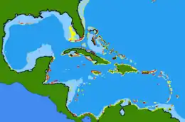 Acanthurus coeruleus is present in the western Atlantic Ocean from New York to Florida, Mexico and Brazil, and Ascension Island in the Mid-Atlantic. Also found in the Mediterranean Sea since 2011.[4]