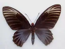 Atrophaneura nox, the Malayan batwing, is a papilionid butterfly found in Java, northern Borneo and Peninsular Malaysia.[3]