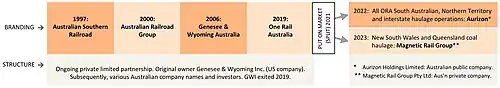 - ↑ New owners confirmed for G&W Australia Archived 15 April 2023 at the Wayback Machine International Railway Journal 9 August 2019