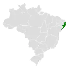 The Pernambuco foliage-gleaner is found in the Pernambuco Center of Endemism, in the far eastern Brazilian states of Paraíba, Pernambuco, Alagoas, and Sergipe. It inhabits tropical evergreen forest and mature secondary forest. In elevation it ranges from near sea level to about 550 m (1,800 ft).[7]