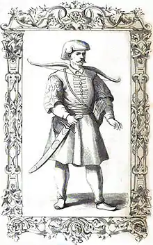 Azebs, azabs, or azaps (Ottoman Turkish: عزب, from Arabic, literally unmarried, meaning bachelor), also known as Asappes or Asappi, were irregular soldiers, originally made up of unmarried youths. They were conscripted among reayas and served in various roles in the early Ottoman army.[1][2][3] The word azeb either often indicates a light infantry soldier which was called yaya azeb or a marine soldier which was called bahriye (navy) and deniz (sea) azeb.[2] The term was used in the sense of "pirate" or "buccaneer" in Byzantine, Latin, and Italian sources from the 14th to 16th centuries.[4]