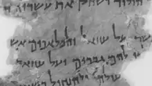 In the Dead Sea Scrolls, the name Azazel occurs in the line 6 of 4Q203, The Book of Giants, which is a part of the Enochic literature found at Qumran.[26] Despite the expectation of Brandt (1889)[27] to date no evidence has surfaced of Azazel as a demon or god prior to the earliest Jewish sources among the Dead Sea Scrolls.[28]