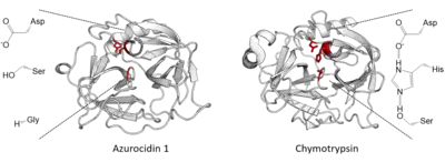 - ↑ Soehnlein O, Lindbom L (2009). "Neutrophil-derived azurocidin alarms the immune system". Journal of Leukocyte Biology. 85 (3): 344–351. doi:10.1189/jlb.0808495. ISSN 1938-3673. PMID 18955543. S2CID 23637918.