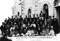 By 1848 the increased fervour of the Bábís and the clerical opposition had led to a number of confrontations between the Bábís and their government and clerical establishment.[34] After the death of Mohammad Shah Qajar, the shah of Iran, a series of armed struggles and uprisings broke out in the country, including at Tabarsi.[34] These confrontations all resulted in Bábí massacres; Bahá'í authors give an estimate of 20,000 Bábís killed from 1844 to present, with most of the deaths occurring during the first 20 years.[38] The first major killings of Bábís recorded in history took place in Qazvin. Since then, attacks against the Bábís by prominent clerics and their followers became more common and some Bábís started to carry arms.[38] In remote and isolated places the scattered Bábís were readily attacked and killed while in places where large numbers of them resided they acted in self-defense.[39] One of these attacks occurred in Babol of Mazandaran which led to the death of several Bábís and their opponents, as well as an armed conflict between Bábís and their enemies in fort Ṭabarsí. After that, two other big clashes between the Bábís and their opponents took place in the cities of Zanjan and Neyriz in the north and south of Iran, respectively, as well as a smaller conflict in Yazd. A total of several thousand Bábís were killed in these conflicts.[38] In the three main conflicts in Ṭabarsí, Zanjan and Neyriz, Bábís were accused by their enemies of revolting against the government.[40] However, it seems unlikely that these actions were purely revolutionary.[40] In all three cases, the battles that took place were of a defensive nature, and not considered an offensive jihad, as the Báb did not allow it and in the case of two urban conflicts (Neyriz and Zanjan), they were related to pre-existing social and political tensions within the towns.[40][41] There is also no evidence of a coordinated plan of action.[40] Wilson suggests that the Bábí uprisings were deliberate and that their clashes with authority were sometimes extremely brutal to respond to the tactics of the supporters of government.[42] In mid-1850 a new prime-minister, Amir Kabir, was convinced that the Bábí movement was a threat and ordered the execution of the Báb which was followed by the killings of many Bábís.[34]