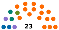 The Assembly elected at the 2019 local government elections, is made up of 23 counselors, with the following party composition:[1]