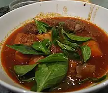It is usually served with rice, rice noodles, or bánh mì, and herbs (examples include Thai basil, and cilantro).[2]