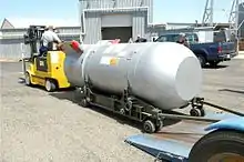 - B53 casing in display yard of The National Museum of Nuclear Science & History, adjacent to Kirtland AFB in Albuquerque, New Mexico