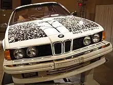 In addition to the work commissioned by BMW, other artists have created unofficial BMW art cars. In 1979 racing driver Peter Gregg purchased a BMW M1 Procar and commissioned his friend Frank Stella to paint it for him; this car is the only BMW painted by an artist who was also part of BMW's own Art Car program.[16] and was sold from the Guggenheim Museum to a BMW dealer in Long Island, New York in 2011.[17] The car is part of Stella's "Polar Coordinates" series, created to commemorate Stella's friend Ronnie Peterson who had died in a racing incident at Monza in 1978.[16][18] In 1987 Keith Haring painted a red BMW Z1 at Hans Mayer Gallery, Düsseldorf.[19] In 1996 Artist Dennis Simon was commissioned to create a BMW Motorsport tribute on the flanks of a 1965 BMW 1800 Ti/SA for BMW's 80th birthday at the Monterey Historics in Laguna Seca, CA. In 2007, Portland's Museum of Contemporary Craft commissioned artist Tom Cramer to paint a 1977 BMW 320i for their grand opening at the DeSoto Building.[20][21] In 2016, the Cultural Council of Greater Jacksonville commissioned artist Christie Chandler to paint a BMW X6 for their annual awards gala at TPC Sawgrass.[22][23]
