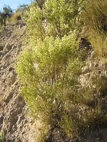 Baccharis linearis, the romerillo or Chilean little rosemary, is a common shrub in Central Chile. It is frequently found in old field after agriculture. Cecidia or galls caused by the fruit fly Rachiptera limbata grow as white, spongy and globose tissues on the twigs of the plant.[2][3]