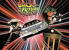 Initial planning for the ride began in 1988.[2] A roller coaster was the original concept for a Back to the Future ride, but designers realized it would be too hard to effectively tell a story due to the fast motion. The second concept of a simulator ride ultimately came to fruition. Riders would board motion-based vehicles modeled after the DeLorean featured in the films, and watch a film projected onto a large, dome-shaped IMAX screen. During the development of the ride, the designers traveled with foam models of the DeLorean to the Expo Centre in Vancouver, British Columbia, Canada, where an OMNIMAX theatre was the setting for trial runs of the ride's film.[3] Intamin was eventually contracted to develop the ride system for the attraction.[4]