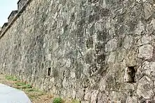 Southern curtain wall with marks of artillery bullet impacts