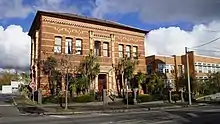 In 1859 the newly formed council acquired land in what was to become the Barkly Street civic area and on 26 December 1861 the foundation stone was laid for the Ballarat East Town Hall, which was built in a Renaissance Revival architecture style and set in formal gardens. It was completed the following year, along with the Ballarat East Free Library next door[6] and the Ballarat East Fire Station, a new headquarters for the fire brigade (formed in 1856) was erected a few years later, in 1864.[7]