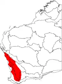 Banksia fraseri ranges from Kalbarri in the north to Cranbrook in the south and as far inland as Kellerberrin. It grows in shrubland, woodland and kwongan.[9][2][10]