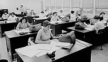 Barbara Canright (Born St. John, 1919–1997) was an American human computer at NASA's Jet Propulsion Laboratory (JPL) who was the first female mathematician to be employed.[1] Canright joined the team in 1939 as a human computer, which required "Teams of people who were frequently used to undertake long and often tedious calculations; the work was divided so that this could be done in parallel." During her time at the JPL program she was instrumental in calculating both the thrust-to-weight ratio for performance of engines under various conditions, and the potential of rocket propellant (which would be used by the U.S. Navy).[2] Canright was critical in the development of the JPL program and laid the foundations for other women to work in a field which was previously closed off to them.[3]
