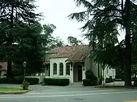 Dedicated to the sanatorium on May 6, 1922, this stucco and red tiled library is still in use. It was paid for by the Los Angeles Optimists Club and has stained glass windows donated by James Slauson and a second by Mrs. Helena Torrance in memory of her husband, Jared Sidney Torrance. Jared Sidney Torrance had served on Barlow's Board of Trustees since 1910 as vice president and president. The library underwent renovations in 1992.[11]