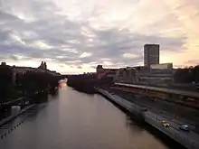 - On the northern shore is the Bonnier Tower, the skyscraper of the headquarters of Bonnier media group, designed be architects Anders and Ivar Tengbom and during the period 1949-1958 the tallest building in Stockholm.[4] Next to it is the Bonniers Konsthall, designed by Johan Celsing and inaugurated in 2006.[5][6]