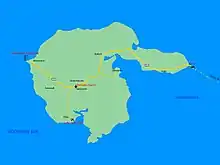 A ferry operates regularly between Hailuoto and Oulu's suburb of Oulunsalo. In winter an official ice road, approximately 10 kilometres (6.2 mi) long, connects the island to the mainland.[29] The main road on the island is the regional road 816, which continue to the mainland towards the Kempele municipality via a ferry connection. Hailuoto also has a small airfield, Hailuoto Airfield, about 6 kilometres (4 mi) south of central village.[30]